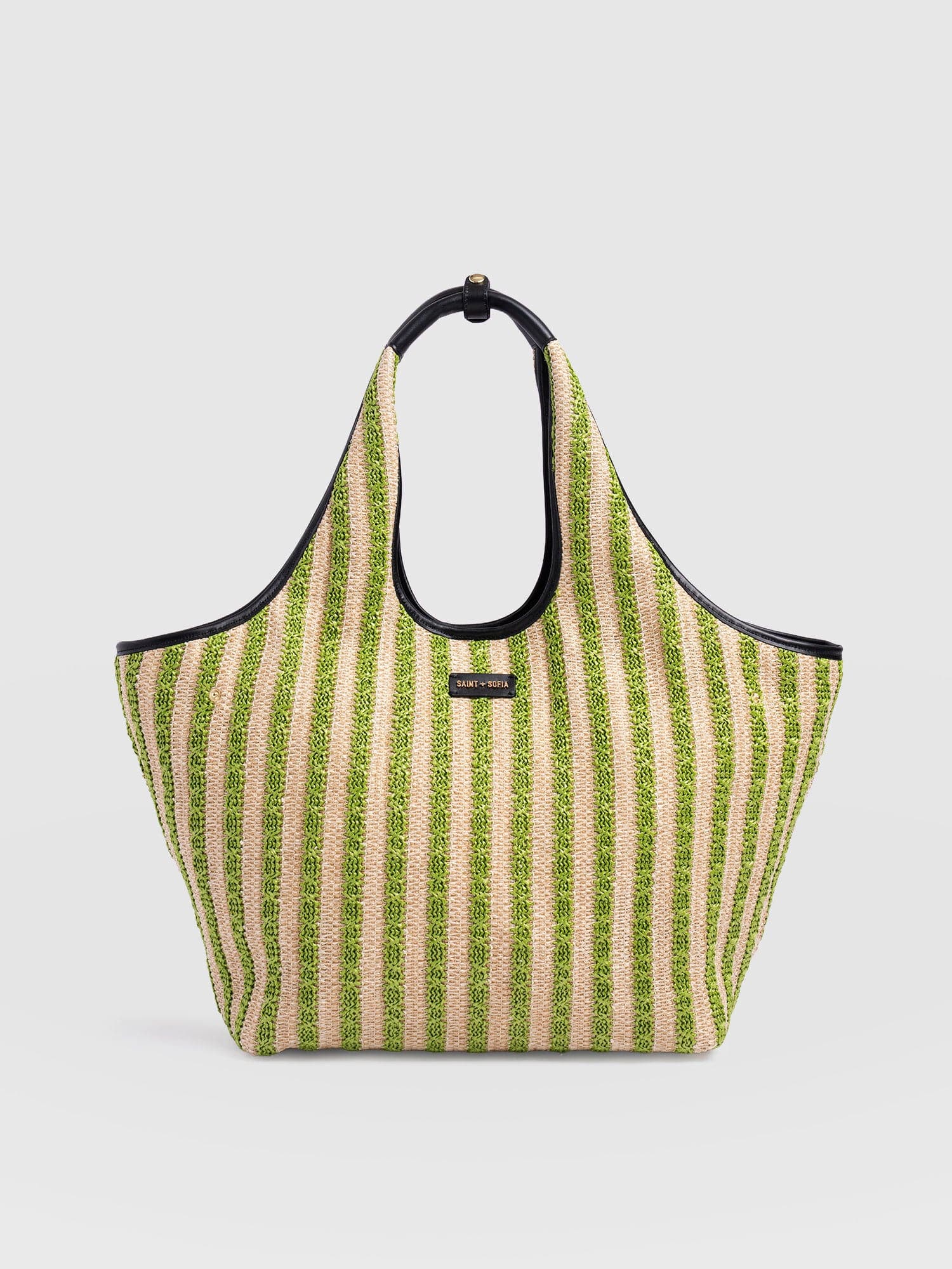 Large Stella Shoulder Tote Bag - Green Raffia - Women's Handbags | Saint + Sofia® EU