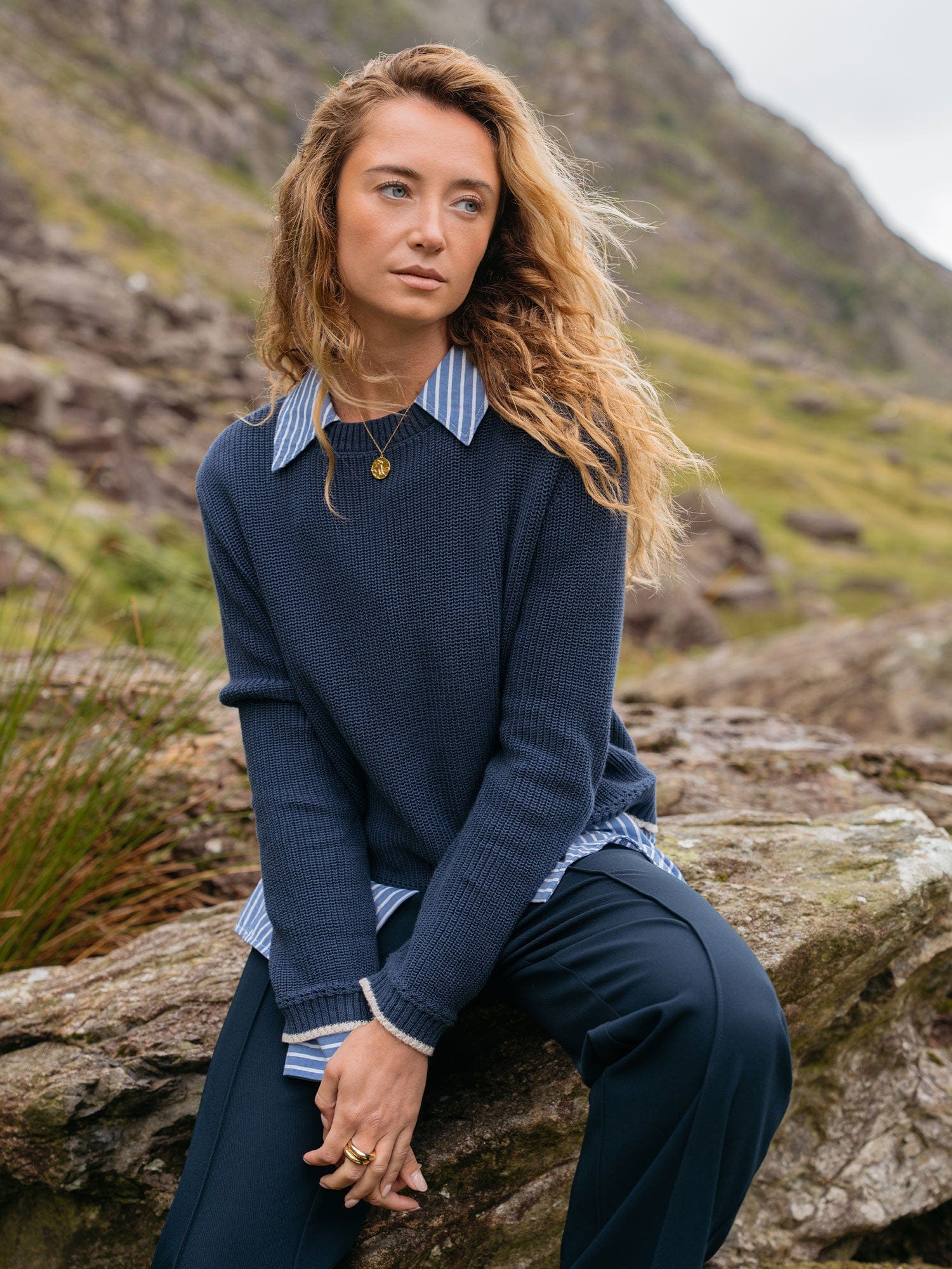 Honeycomb Rib Jumper Navy - Women's Jumpers | Saint + Sofia® EU