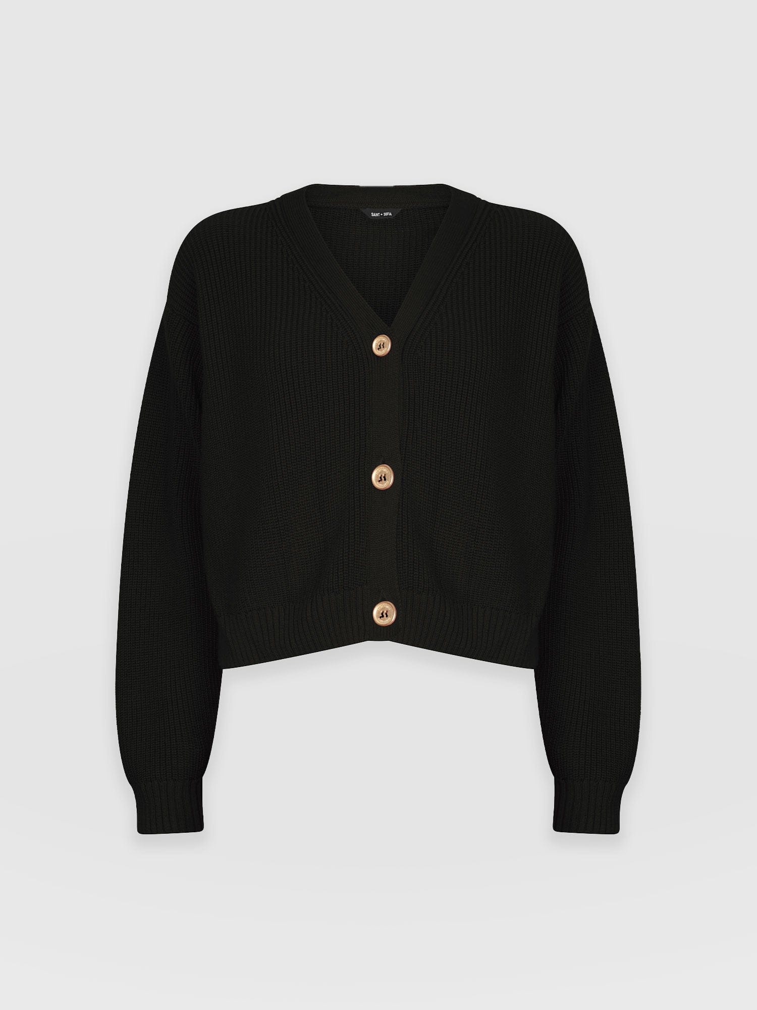 Soho Crop Cardigan Black - Women's Cardigans | Saint + Sofia® EU
