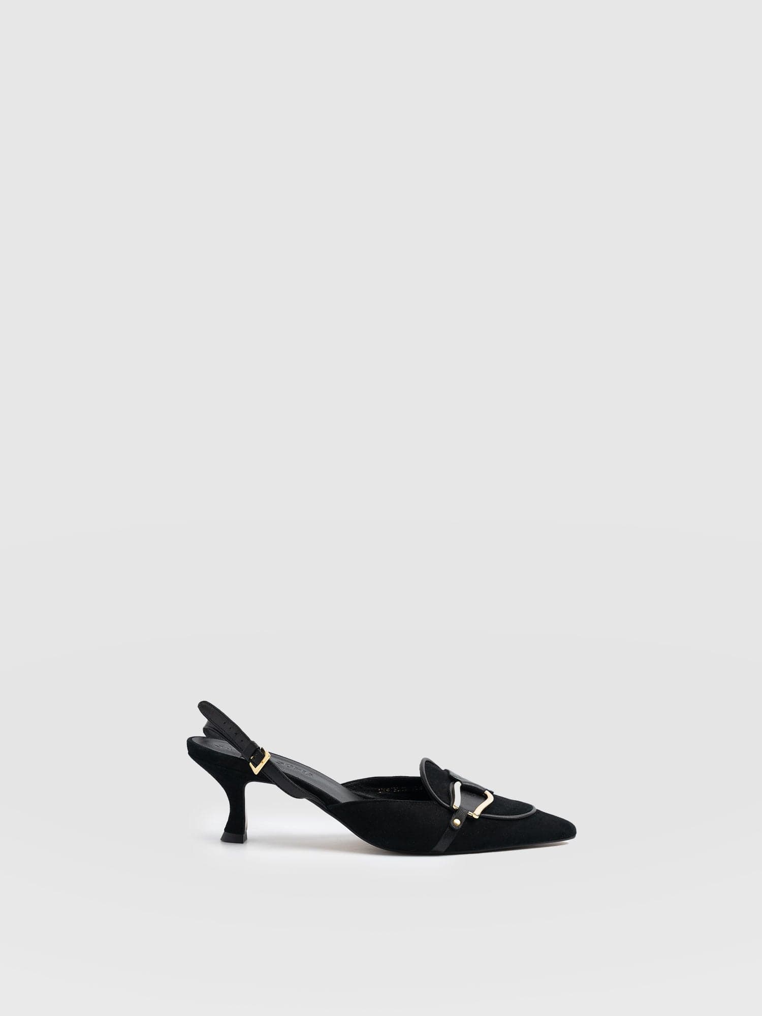 Look: Elegant slingback kitten heel. Adjustable buckle sling back strap
