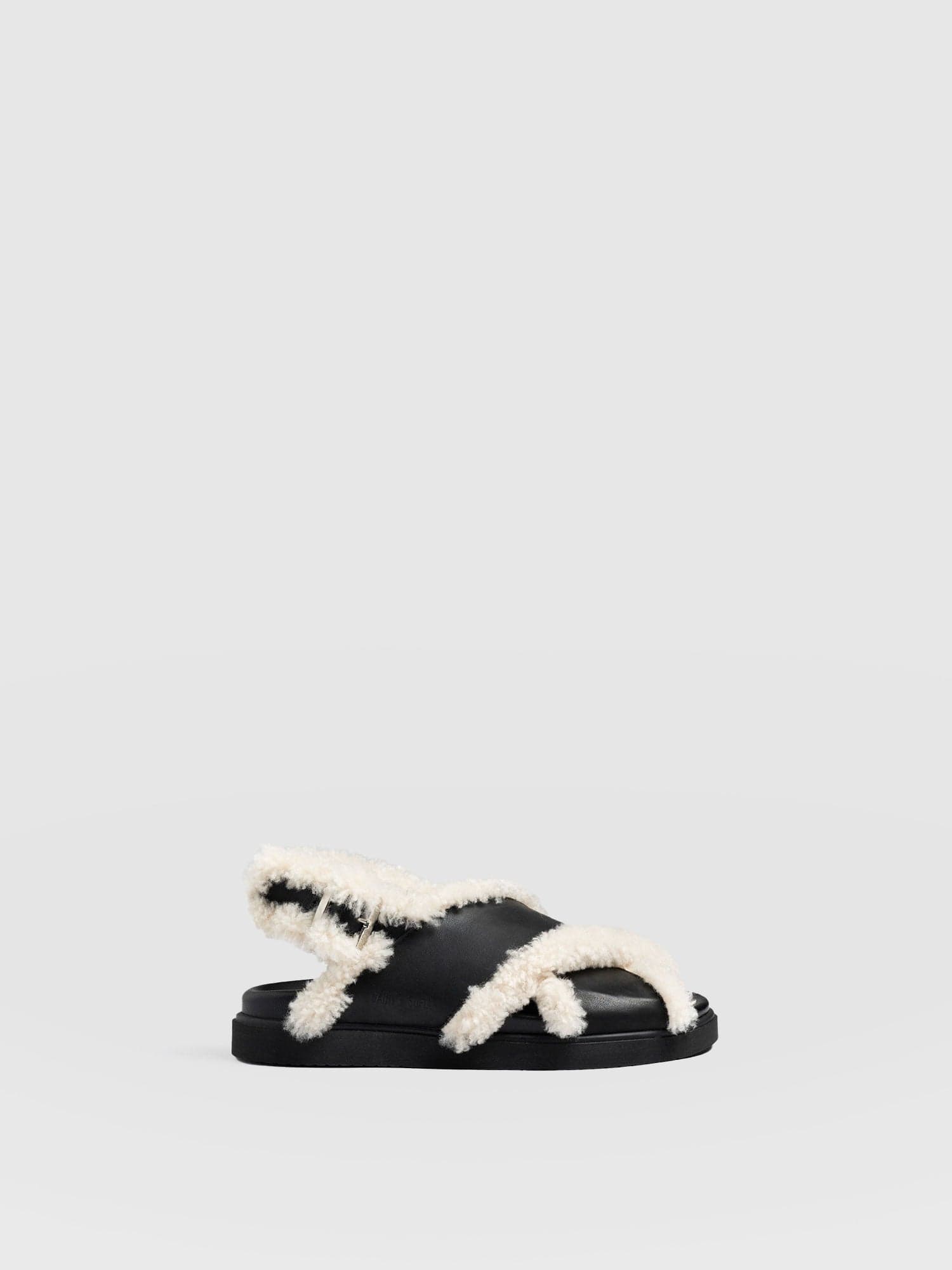 Isla Shearling Sandal Black - Women's Sandals |  Saint + Sofia® EU