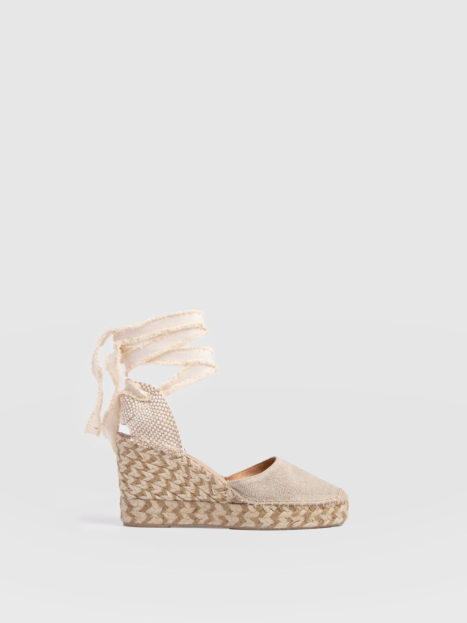 Elegant espadrille canvas wedges with a tie-around ankle