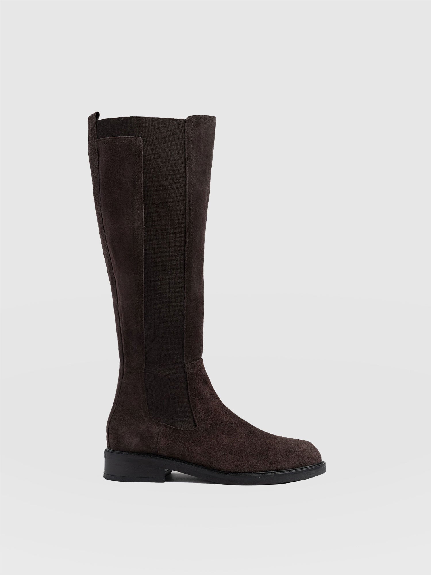 An A/W essential, the Evelyn Knee High Boots in black are the perfect fusion of chic style with classic comfort. They're expertly handmade by skilled artisans in Europe using Italian leather and are a lengthened take on the signature Chelsea boot silhouette. With an elasticated side panel and a back heel tab, they make for easy wear, while the glossy finish and subtle heel add an elevated touch to any look.