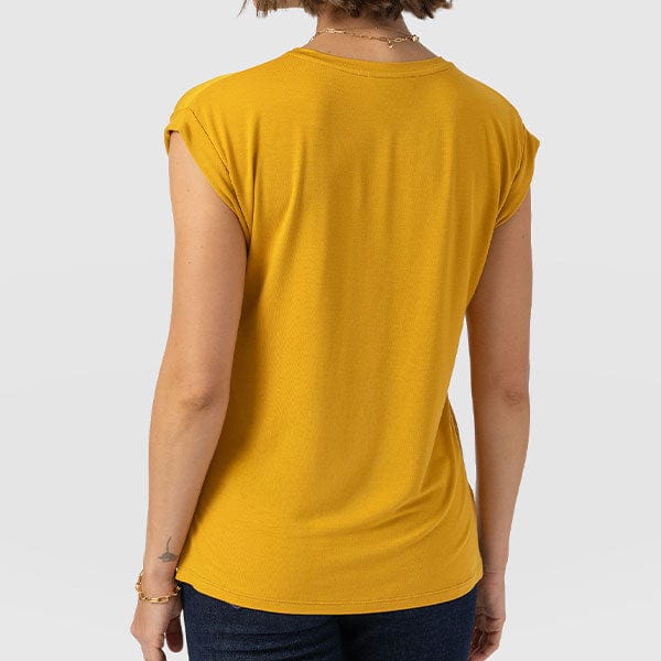 A classic crew-neck tee in our vibrant Golden Yellow hue with rolled cap sleeves. The Turn Up Tee is cut to a relaxed, easy fit that’s perfect for throwing on with any outfit. Each one is handmade in Europe using the softest, planet-friendly fabric to ensure all-day comfort. Pair it with jeans or leggings and your favourite trainers, or opt for skirts on warmer days.